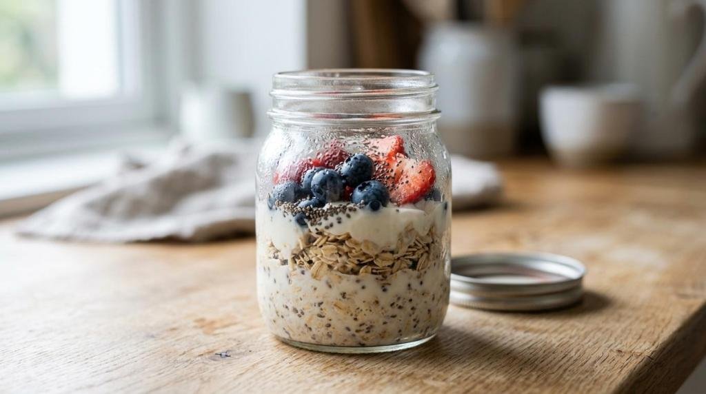 Overnight muesli in a jar Breakfast 5 min Up to 4 days No-cook, portable, simple pantry staples